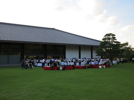 奈良県新公会堂の裏庭でのウェルカムパーティーは風情あるものでした!外国から招いた先生方にも大好評!
