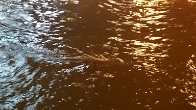 そして公会堂そば,道頓堀川につながっている大川で怪しげな四つ足の哺乳類が泳いでいるのを発見!