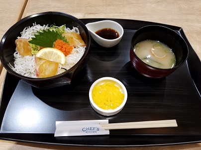 松山と言えば鯛ということで,鯛の乗ったしらす丼をいただきました.