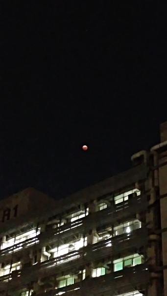 夜まで頑張る学生たちが、皆既月食を堪能していたようです。
